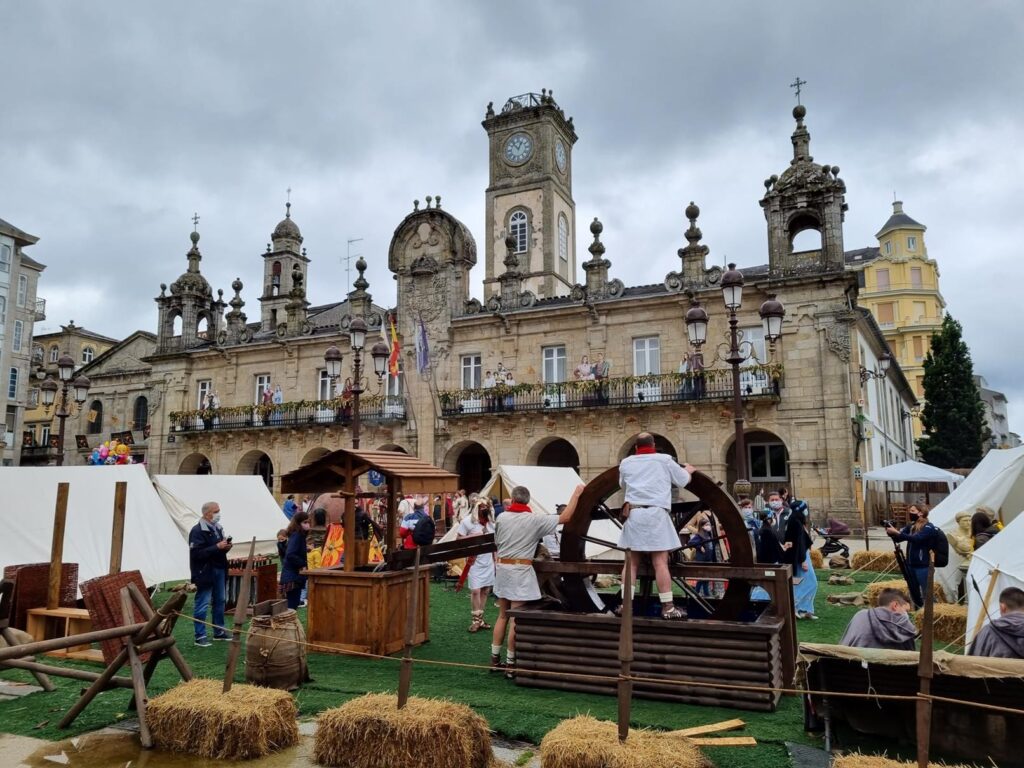 Las icónicas murallas romanas de Lugo no solo sirven como telón de fondo, sino que muchas actividades tienen lugar en sus inmediaciones. Incluso hay recreaciones de cómo se defendía la ciudad en la antigüedad.