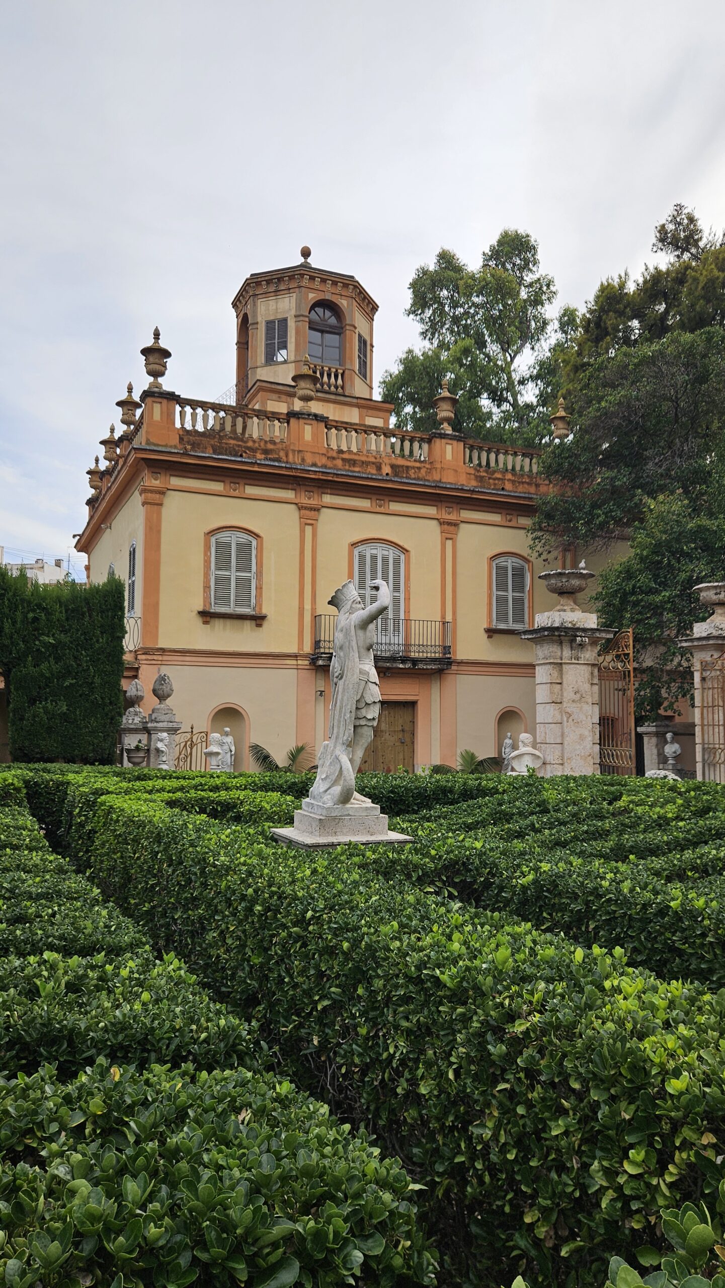 Setos y laberintos verdes perfectamente recortados, ideales para fotos y momentos contemplativos.
